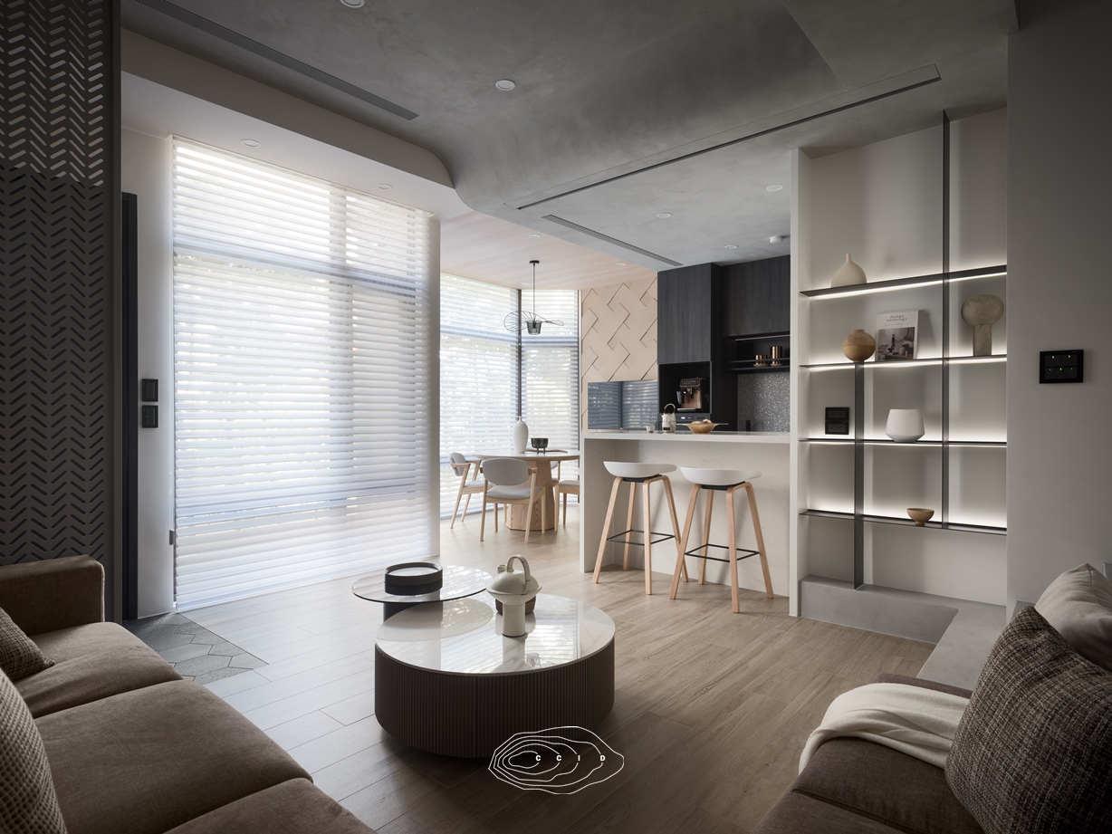 - 開放式設計: 採用開放式客餐廚格局,減少實牆阻擋,讓自然光線能深入到公共空間的每一個角落。
